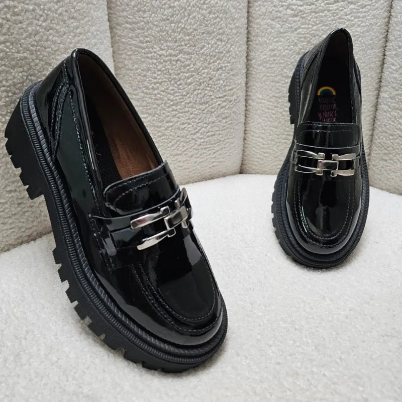 . Los Mocasines Esmeralda en charol están diseñados para brindarte el equilibrio perfecto entre confort y sofisticación. Gracias a su suela de 5 cm, ofrecen una ligera elevación que estiliza la figura sin sacrificar la comodidad, permitiéndote caminar durante horas sin molestias. Además, su herraje decorativo no solo agrega un toque de distinción, sino que los convierte en una opción versátil que puedes combinar con una amplia gama de looks, desde los más casuales hasta los más formales.